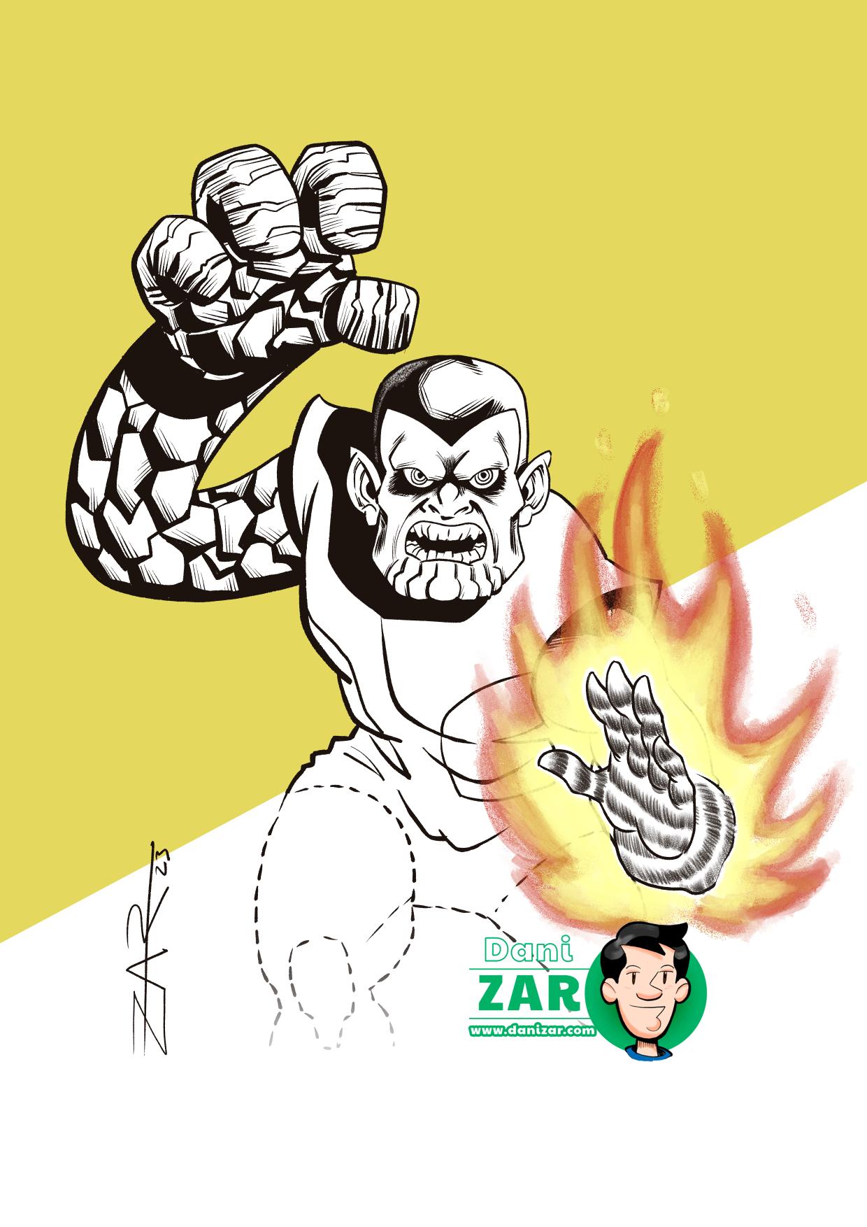 Como la situación me dejó un tanto contrariado decidí olvidar la versión de la serie Secret Invasion y dibujar la versión de los cómics. Recordé que tenía un boceto del personaje en una de mis libretas y me puse manos a la obra para dibujarlo en todo su esplendor y con todos los poderes de los 4 fantásticos. ¡Cómo debe ser!
